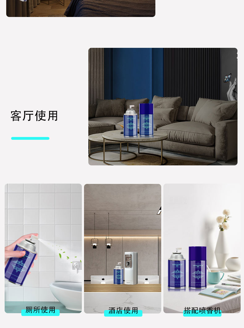 适用范围:家庭、企事业单位、赠品、福利(备有礼品装)、办公室、卫生间、星级酒店、宾馆、娱乐场所、写字楼、美容院、摄影楼、火车、汽车车厢、候车室、会议室、大厅、工厂、医院、夜总会、写字楼、桑拿城、营业厅、咖啡厅、茶酒楼、接待室、网吧等健身娱乐中心等人口密集和需要增添清香的地方。